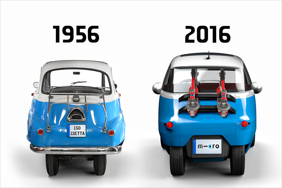 Derrière Microlino se cache Micro, un fabricant de trottinettes. C’est à son fondateur, le Suisse Wim Ouboter, que l’on doit la mode pour ce moyen de déplacement, à la fin des années 1990. Aujourd’hui, Wim Ouboter veut passer la vitesse supérieure. L’idée est simple : la Microlino serait à l’automobile ce que la trottinette Micro est au vélo. Un engin plus compact pour les déplacements de proximité. Cette petite auto, dont l’homologation est prévue en quadricycle lourd, ajoute une bonne dose de charme en reprenant et modernisant les lignes de l’Isetta.