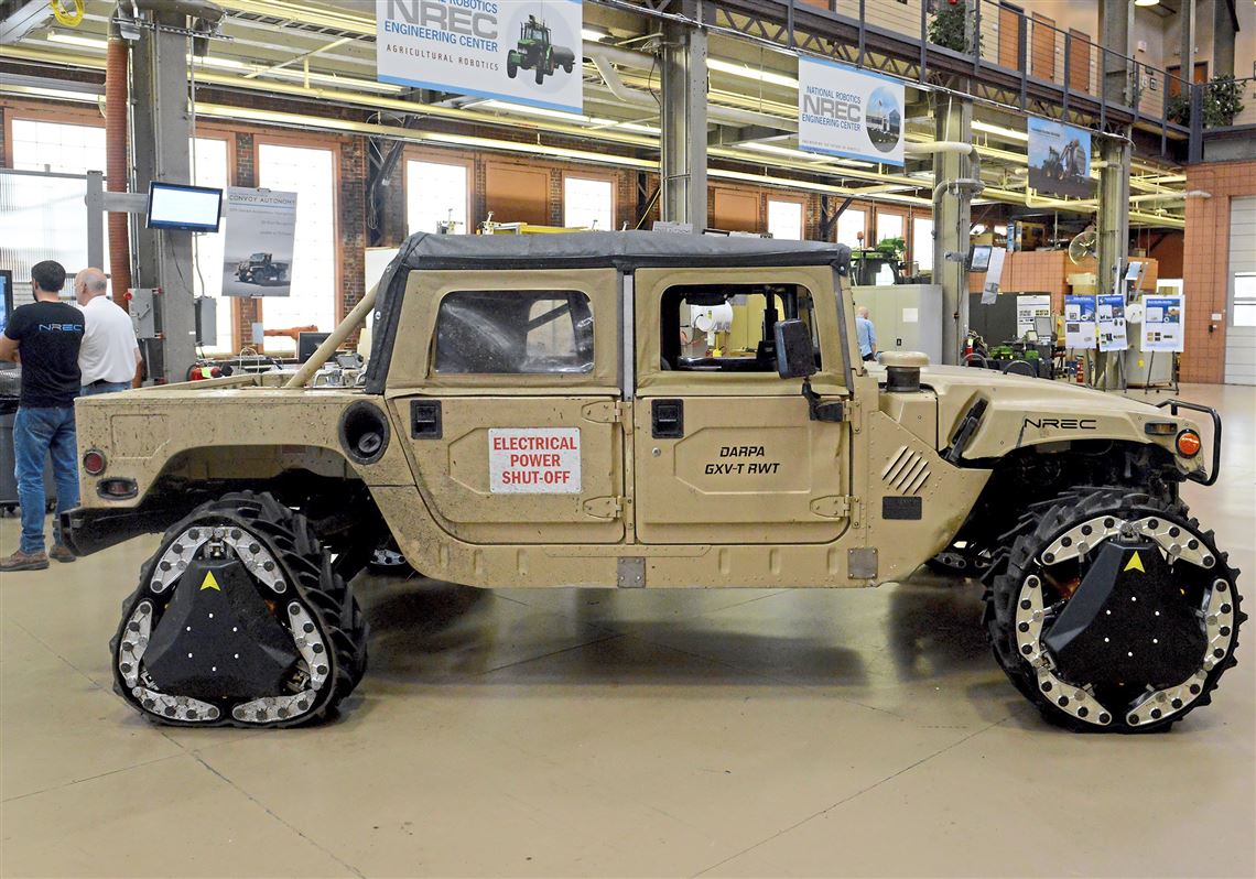 L’Agence américaines de projets de recherche avancée de la Défense (DARPA), est chargée d’assurer aux États-Unis une  avance  en matière de technologie sur le reste du monde.  Avec l’un de ses partenaires du National Robotics Engineering Center de l’Université Carnegie Mellon,  une solution étonnante au problème de la motricité tout terrain a été développée. Grâce à un kit, en deux secondes le véhicule 4 roues motrices en mouvement (ici un Hummer) se transforme en engin chenillé. Cela permet en quelques instants d’augmenter la portance de façon significative.
