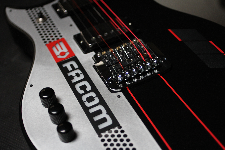 Mais il fallait aussi revisiter cette forme classique et lui donner un look industriel en phase avec l’identité de FACOM. Deux guitares recto verso ont été déclinées en version gaucher et droitier.